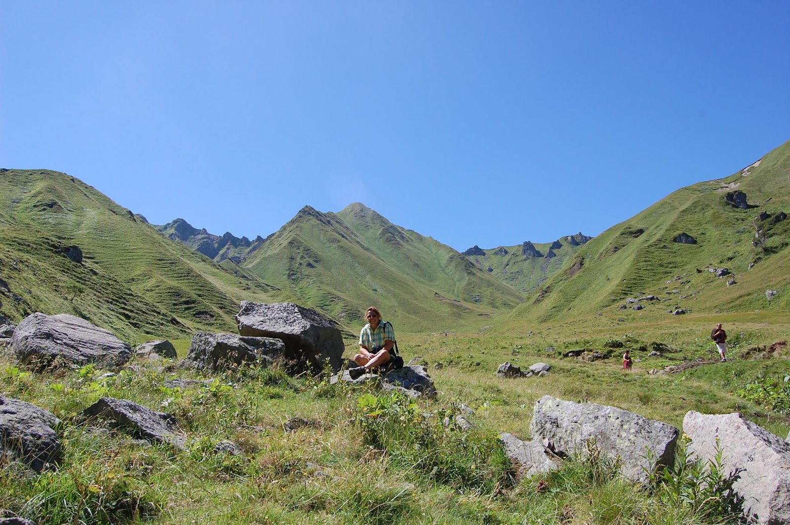 Cuando regreso a la autocaravana Ruben ya tiene preparado el macuto para irnos a hacer un excursión al Col de Curre a 1712 metros. Desde allí arriba, en un kilometro también se puede llegar al Col de Sancy. Impresionante el sitio. ¡Ojo! todo el recorrido del Val de Curre está dentro de la Reserva Natural-Nacional de Chaudefour-Sancy y esta prohibido ir con perros aunque sea atados. La multa puede ascender a los 750 euros. Ya lo sabíamos y Ruben las había sacado a dar un gran paseo mientras yo había subido en el teleférico. La subida al Col de Curre es dura y requiere de que llevéis un buen calzado.