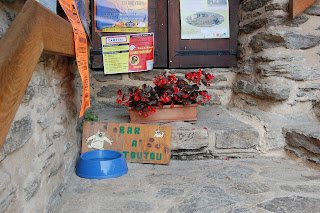 Al día siguiente vamos hacia Font Romeu, tenemos que hacer comprar y queremos ir hasta el Plate de le Calme a 2050 m, nos perdáis la marcha a Roc de Calme a 2213 m. desde allí se divisa el conjunto de lagos de La Bouillouse. La Gallinera es otra ruta… También podéis ir por un sendero hasta el área lúdica de les Airelles, aquí a parte de rutas a caballo tenéis el teleférico que os baja a Font Romeu. Nosotros bajamos, desde este lugar, andando en unos 45 minutos y después subimos en teleférico, los perros pueden subir.