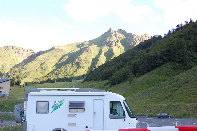 En este área coincidimos con dos autocaravanas españolas, asi que estas dos y una que encontramos en Salers serán todas las que hemos encontremos en esta semana de viaje por Auvernia. Lo que prometía ser una velada estupenda con los compatriotas acabo pronto porque se puso a llover con muchísima fuerza, hubo que recogerse a todas prisa.