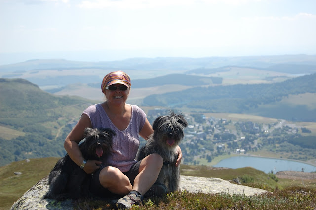 El dia 26, nos levantamos temprano, el día por lo pronto está claro, ni una nube así que nos disponemos a subir al Puy de Sancy. Desde el área de autocaravanas que está situada a 1100 metros de altitud son 4.5 km de continua subida hasta llegar a los 1889 m. También es posible coger un teleférico que te deja a mitad de camino pero la excursión merece la pena y nuestras perras disfrutan mucho.