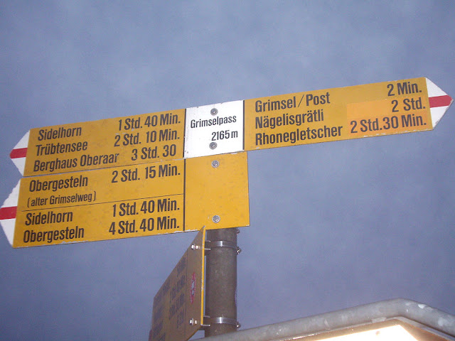 Al levantarnos nos ponemos rumbo a  Interlaken, dejaremos el Canton de Valais  y nos adentraremos en el Canton de Berna para ello tenemos que pasar por el Grimselpass a 2165 metros de altitud, 33 kilometros con una media del 10 % de desnivel.  Antes de subir a la cima hemos pasado cerca del glaciar del Rodano y comemos en el lago  Totensee o lago  de los Muertos que está prácticamente en la cima a 2144 metros de altitud. Como los días anteriores enseguida el día se metió en niebla y ésta vez además viento, ni ganas de quedarnos en la cumbre para hacer algunas de las excursiones que se indican y como la niebla es caprichosa después de comer quisimos hacer una foto del lago y no veíamos a dos metros.