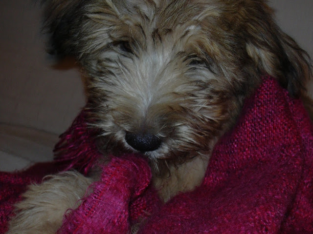 Tejo, se lo había pasado genial en su paseo, allí coincidimos con varios alemanes que conocían la raza de Gos d’atura català y le acariciaron y mimaron con galletas.