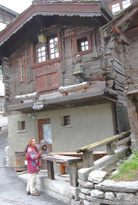 Era primeros de agosto y hacia mucho frío. Paseamos por el pueblo y disfrutamos de sus rincones hasta que el mal tiempo nos obliga a coger la bici y volver a Täsch.