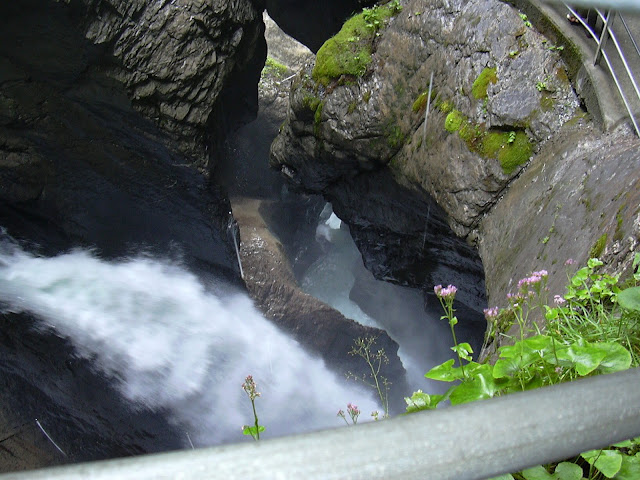 Al levantarnos nos vamos hacia Trüemmelbachfaelle, Los Pozos de Musica, 10 cascadas  que caen desde las paredes del Eiger (3970m), Mönch (4099m) y Jungfrau (4158m) con hasta 20,000 litros de agua por segundo. El coste de la entrada son 10 francos por persona. Nosotros aparcamos sin problemas.