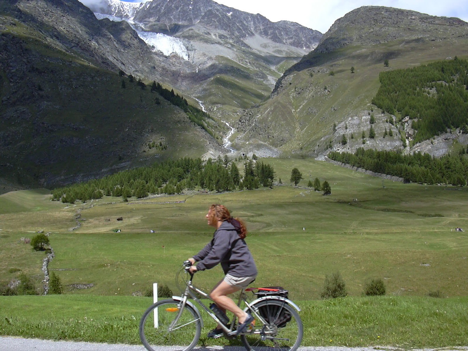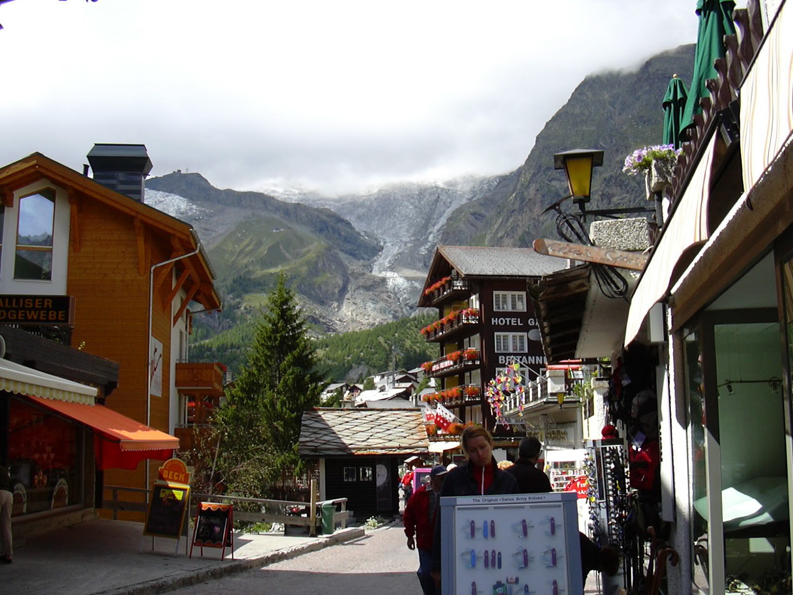 Era primeros de agosto y hacia mucho frío. Paseamos por el pueblo y disfrutamos de sus rincones hasta que el mal tiempo nos obliga a coger la bici y volver a Täsch.