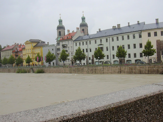 Llevamos ya días fuera de España y no nos parece normal tantos días de lluvia seguida o,  pudiera ser que hubiésemos tenido mala suerte con la elección de los días de vacaciones, lo que es cierto es que el río Inn, a su paso por esta ciudad , lleva mucho caudal y tiene un color de agua muy turbio, fruto de muchas precipitaciones.