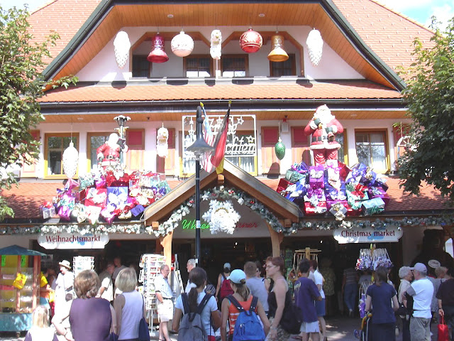 Sin duda,  es un lugar muy turístico rodeado de hoteles, restaurantes y comercios en muchos de ellos podréis ver los relojes de cu-cu.  Os recomiendo comeros una porción de tarta de Selva Negra. El lago se puede recorrer en barco.  Sorprende estar en pleno mes de agosto y ver comercios con un papa Noel anunciando artículos de navidad.