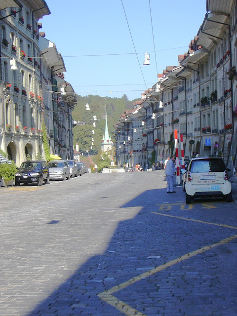 Durante el desayuno hemos planificado la vuelta a casa, la idea es pasar por El Alto de Randel queremos llegar a los Volgos, la idea resulta un fracaso, nos lo impide una señal de tráfico de prohibido a vehículos  de mas de 2,20 metros  de anchura.  Decidimos parar y planificar que hacemos y sobre la marcha optamos por visitar la ciudad de Berna. Dicho y hecho, volvemos a Suiza.