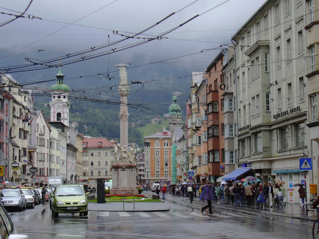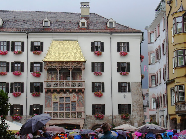 Cuando con los años hemos vuelto a esta ciudad hemos aparcado en el camping de Innsbruck  pero, ese año nos apañamos bien de esa forma. Aun así, al día siguiente y puesto que llueve mucho decidimos movernos  y acércanos al centro histórico.  como no, nuestro primer objetivo es ver el famoso Tejadito de Oro, lo vimos coronar por encima de un  mar de paraguas,  era un día horrible, lluvia y mas lluvia. No dejéis de visitar el Palacio Imperial o la Torre de la Ciudad que durante años sirvió para anunciar a los vecinos peligros como incendios, ataques enemigos o tormentas. También da gusto visitar el trampolín de saltos de Bergise.