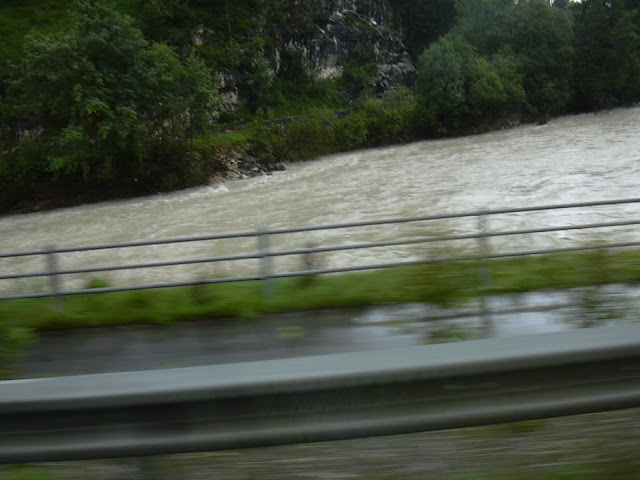 Imagino que si el tiempo hubiese sido otro, nos hubiésemos quedado en Lucerna a pernoctar pero no lo hicimos, decidimos que nos vamos hacia St Moriz. volvemos por la misma ruta que nos llevo a Lucerna pero nos desviamos hacia Wassen y pasamos por el Sustenpass a 2.224 metros de altitud. No podemos admirar la belleza de la cumbre porque el frío, el viento y la lluvia nos lo impiden. Está siendo un viaje pasado por agua, menos mal que el día que subimos a la Jungfraujoch hizo sol. Al pasar por la población de Andermatt decidimos parar, la lluvia era ya muy fuerte y la niebla era cada vez mas intensa hasta el punto de no ver a dos metros de nosotros.
