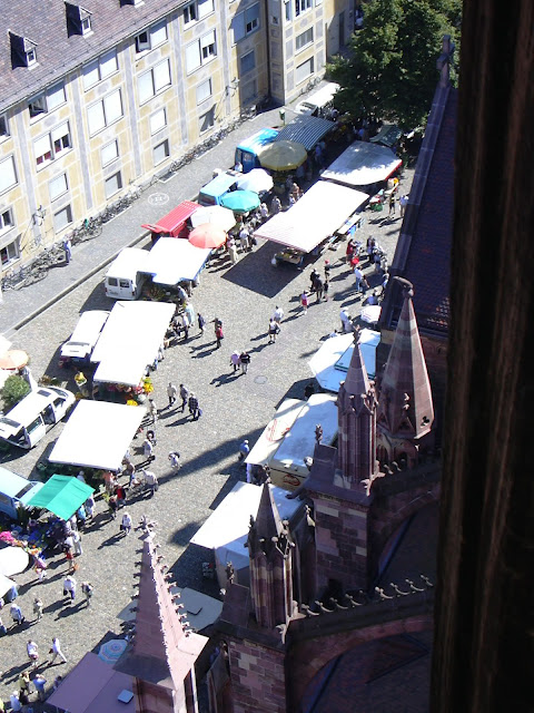Al levantarnos y tras el paseo de Tejo no vamos en bici al centro histórico, la ciudad es acogedora y sus gentes amables. Mientras Ruben sube a hacer fotos a la torre de la catedral de 116 metros de altura, junto a Hosana, una de las campanas mas antiguas de Alemania (1258), yo recorro el mercadillo que hay instalado en la plaza donde se ubica (Münsterplatz). Después recorremos sus calles, sus plazas y la verdad, es una ciudad que nos gusto mucho.