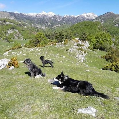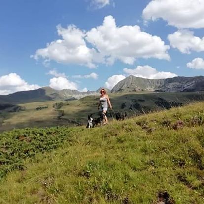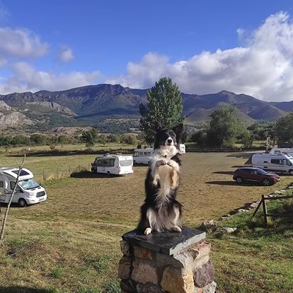 Guardando la distancia de seguridad en el aparcamiento, rodeados de cumbres de más de 2000 metros y rutas de montaña, la sensación que vives es de estar en el sitio perfecto para para ti, tu autocaravana y tus perras. 31/08/2020