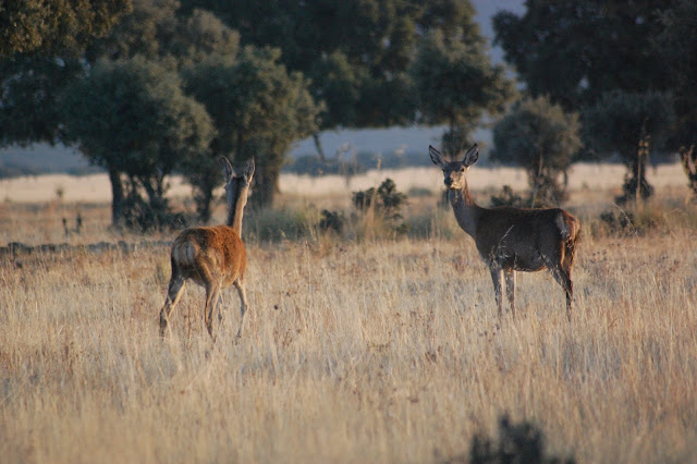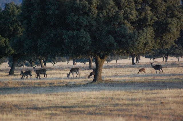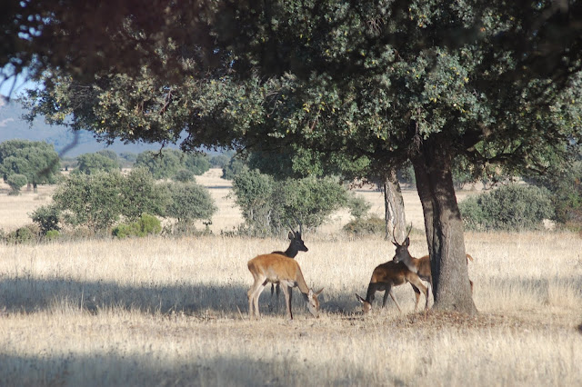 Sin duda, parece que hay una sobrepoblacion de ciervos, el guía nos cuenta que algunos ejemplares son dormidos para llevarlos a otros parques y lugares naturales pero quizás la mejor manera de que la raña y el bosque sean suficientes para la cantidad de ejemplares es que existiera una regulación natural, un depredador como el lobo es necesario, aunque será problemático para la Administración introducir el lobo en Cabañeros pero seria la única forma de evitar una población de ciervos incontrolada.