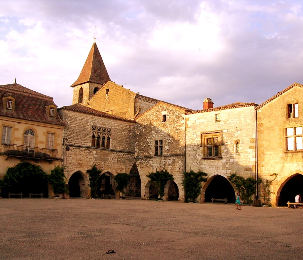 Estamos ante edificios que por si solos serian catalogados de auténticos monumentos quizás por ello toda la villa ha sido declarada Monumento. La torre de la iglesia de Saint Dominique, que también se construyo en el siglo XIII, se alza sobre las construcciones de la plaza.