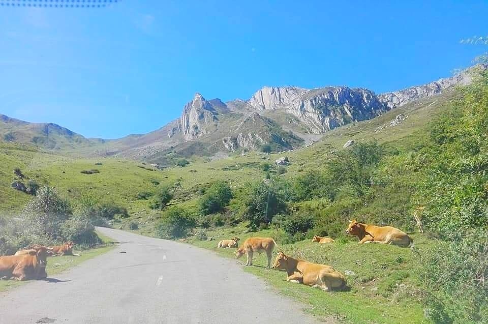 Y una sabe que está ya llegando a la cima cuando las ve a ellas, a las vacas; forman parte del paisaje de los puertos de montaña en verano, igual que yeguas, caballos y potros.