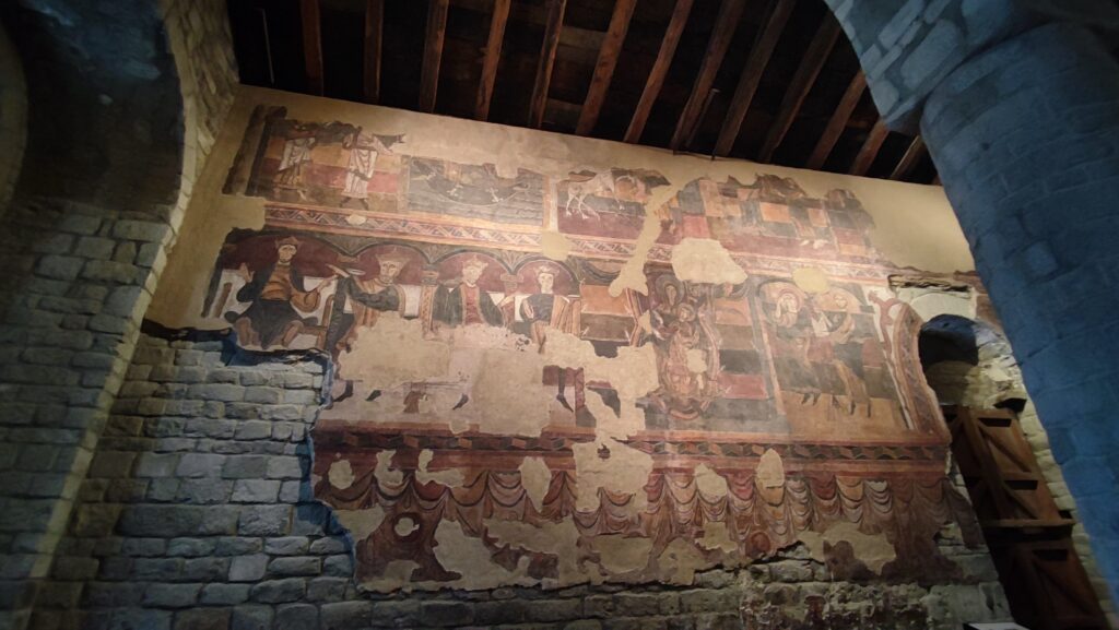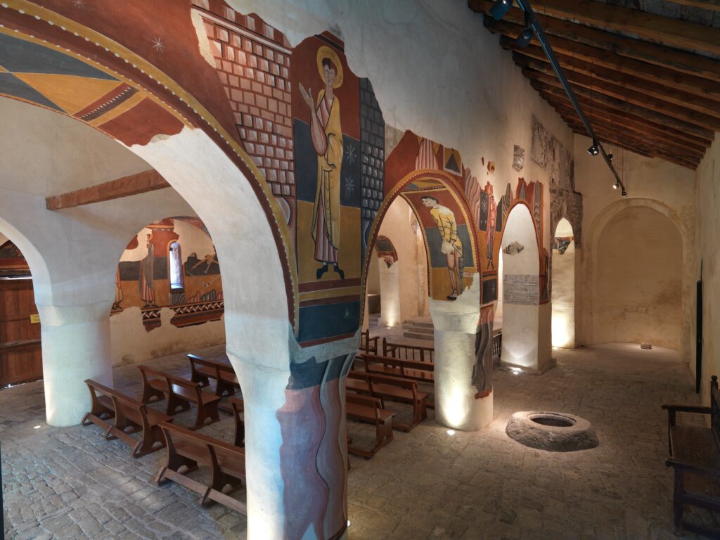 Desde Barruera también es posible hacer varias rutas senderistas, algunas en paralelo al rio, otras llegan, hasta por ejemplo, el pueblo de Boí. Si decidís visitar Boí con la autocaravana que sepáis que en verano o fechas señaladas como puentes o Semana Santa está complicado el poder visitar la localidad, el aparcar nuestros vehiculos es un verdadero desafío, máxime cuando el lugar reservado para autocaravanas estaba cerrado a nuestros vehiculos. Su iglesia de Sant Joan de Boí al igual que Santa Maria y Sant Climent de Taúll se puede admirar los frescos con los que fueron decoradas estas iglesias al ser construidas, allá por el siglo XI. Para pintar aquello murales, se fabricaba una especie de mortero en el que se mezclaba cal, arena y agua. Ademas, con la técnica del temple, que consistía en sumar a los pigmentos naturales yemas de huevo, se pintaban los detalles de las figuras de los murales y también las tallas murales y altares o puertas. Los tejados de todas las iglesias del valle están construidas con madera en su interior y pizarra en el exterior y en caso de la iglesia de Sant Joan de Boí.