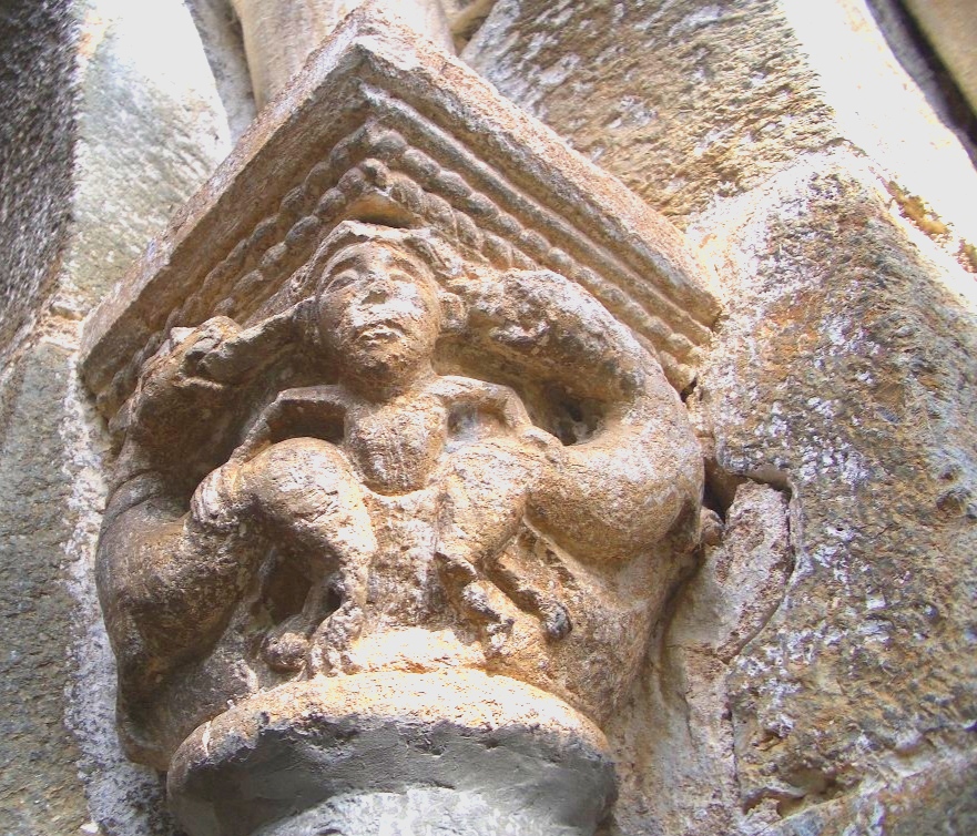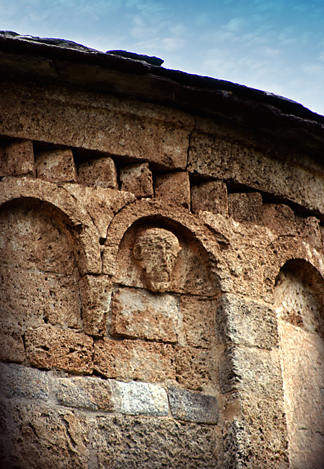 Y también desde Barruera sale un camino que asciendo por la falda de la montaña hasta la pequeña población de Cardet. En esta pequeña población se puede admirar la pequeña iglesia de Santa María de Cardet. En esta iglesia el campanario no es una esbelta torre es un campanario de espadaña. Claro que con las vistas que tenían a pie de calle desde la misma población no necesitaban altos campanarios para tener vigilado el paso por el valle. Como detalle fijaros en la cabeza esculpida que existe bajo los arcos del ábside.